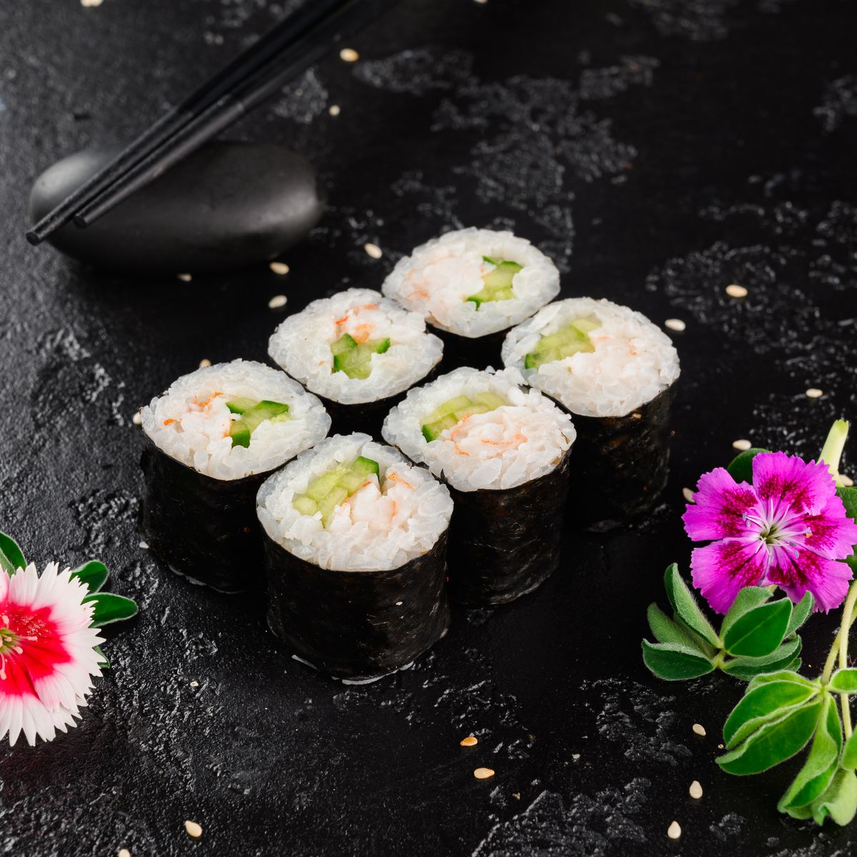 Ролл с креветкой и огурцом