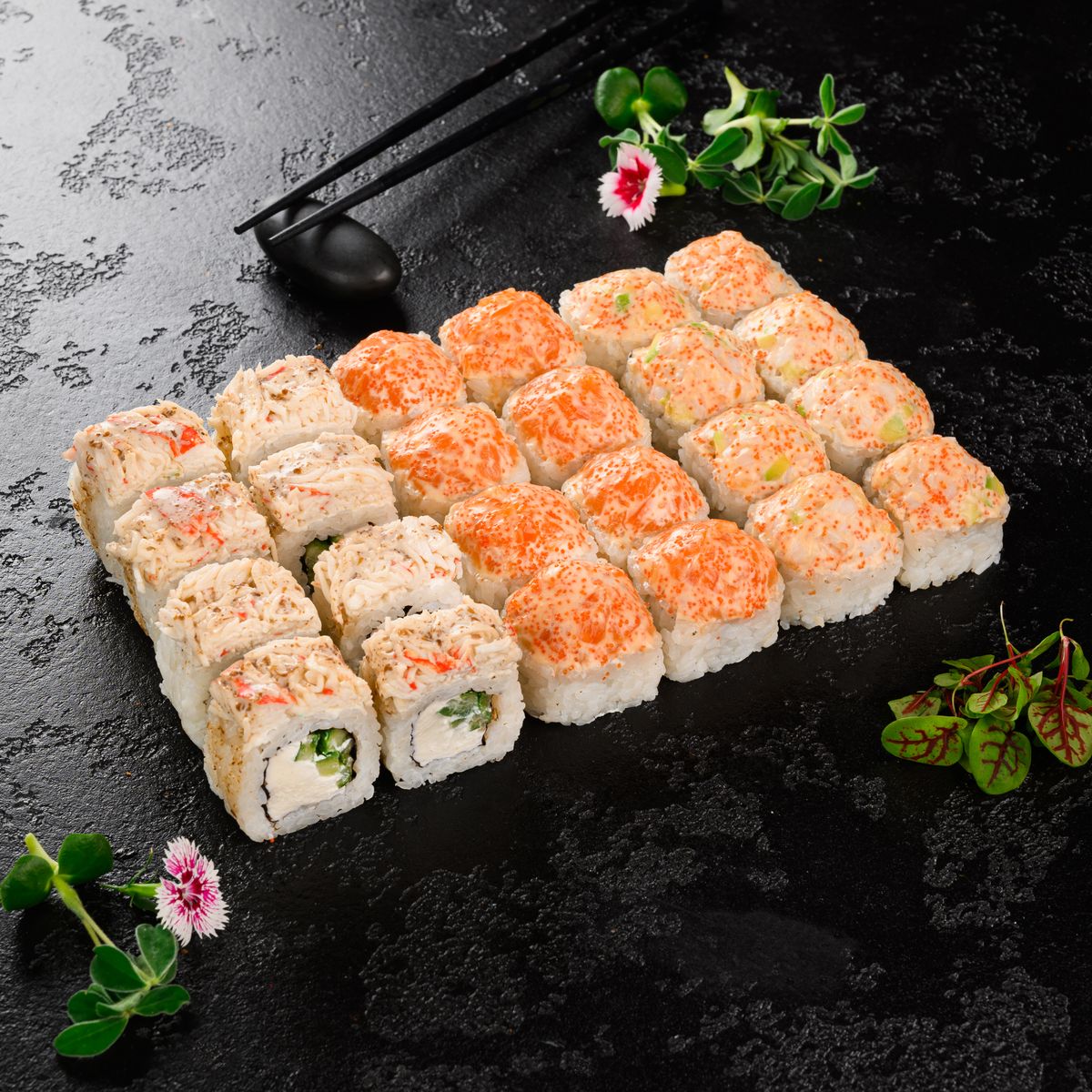 -Аляска (Сливочно-творожный сыр, огурец, снежный краб, соус ореховый)