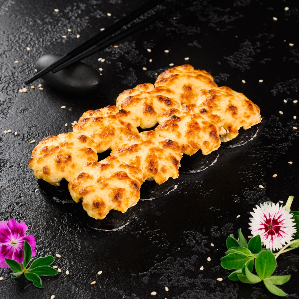 Жареный лосось, японский омлет, огурец, сырный замес.